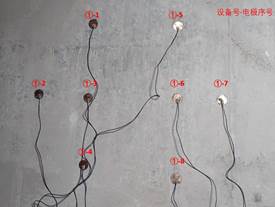 在选取了试验场地后,石宇辉与张兆帅同学便利用在实验室模拟实验得出的电极分布位置利用导电胶将各个电极粘合在隧道表面。