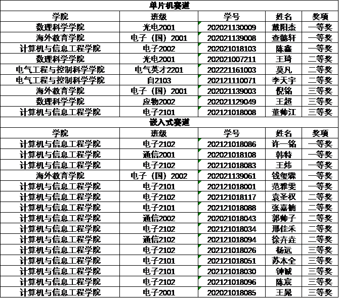 由教务处、bevictor伟德联合举办的第十四届蓝桥杯大赛电子类校内模拟赛于2023年3月29日举行。本次模拟赛单片机赛道参赛16人,嵌入式赛道参赛28人。遵循公平、公正、公开的原则,经客观题(30%)、实操题(70%)综合评审,共24人获奖,其中单片机赛道一等奖3人、二等奖3人、三等奖3人;嵌入式赛道一等奖5人、二等奖5人、三等奖5人,现将获奖名单予以公示(详见下图),公示期为三个工作日。