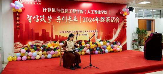 会上还进行了新入职教职工自我介绍,促进了全院教职工的认识和了解。同时,还开展了教职工风采展示及抽奖活动。智能系郭琦的《探窗》、电子系的朗诵《我爱上班、我爱科研》、通信系陈世超二胡独奏《兰亭序》、学办的歌舞《撸起袖子加油干》、团建活动《A4纸运乒乓球》、《翻转纸杯》以及抽奖环节,将茶话会热闹欢快的氛围步步带入了高潮。这些精彩纷呈的节目不仅展现了公司教职工的多才多艺,更让每一位参与者都感受到了来自同事间的美好祝愿与公司的温暖关怀。