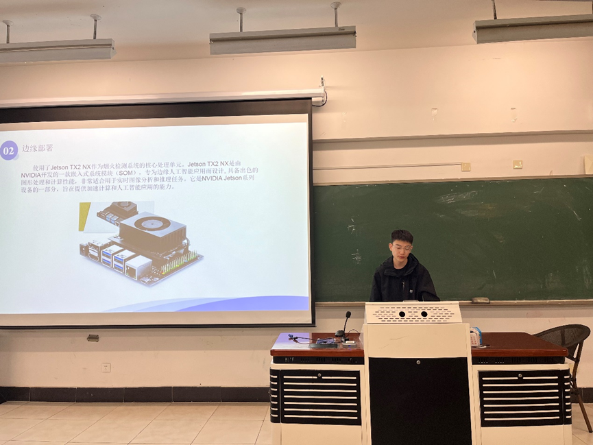 张详云同学首先介绍了本次研电赛的比赛要求,并分享了基于跨模态学习的视频图像检索与描述系统。该系统通过跨模态学习算法实现视频到图像的精准检索和描述,为用户提供丰富的多模态结果。彭华东同学介绍了基于振动信号的PHM轴承健康监测平台。该平台通过振动信号采集和分析,能够实现对轴承健康状况的实时监测和预测,为机械设备的维护提供重要依据。刘振洋同学分享了基于深度学习的厂区火灾安全检测系统。该系统能够实时监测厂区内的火灾情况,极大地提升了厂区火灾安全防范的效率和及时性。