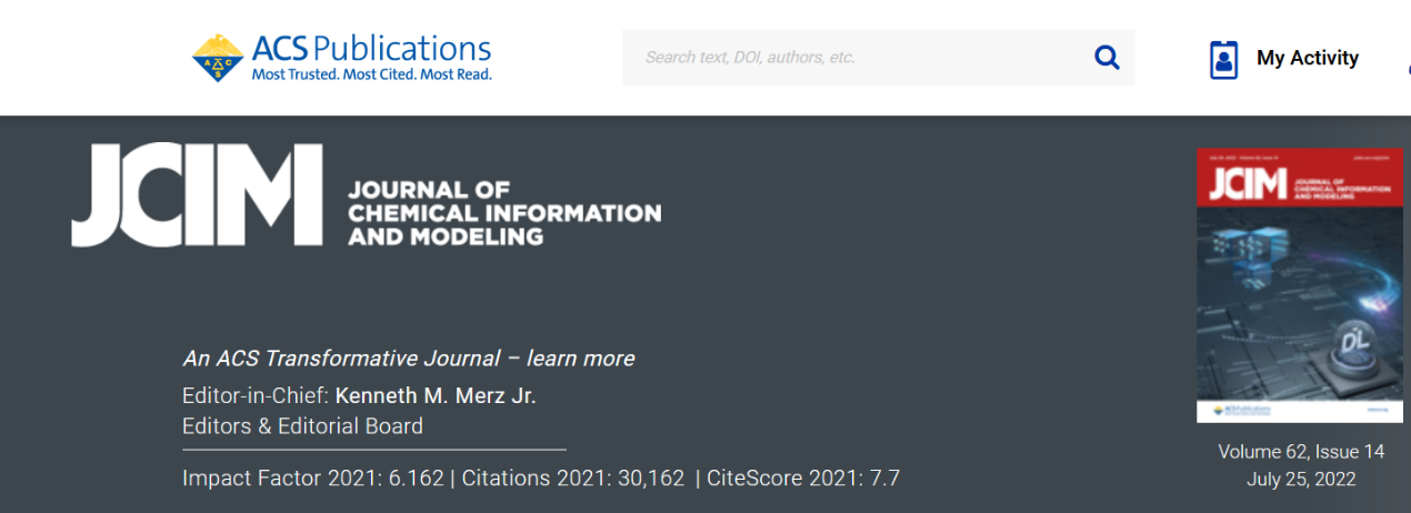 Journal of Chemical Information and Modeling (J. Chem. Inf. Model., JCIM)是美国化学会旗下,专注于化学信息学和计算模拟研究的顶级期刊之一。创刊于1961年, 60年来,JCIM见证着包括化学、生物学和计算机科学交叉的新兴学科领域的诞生和发展,发表了许多在药物设计和化学信息学领域具有重要影响力的工作。