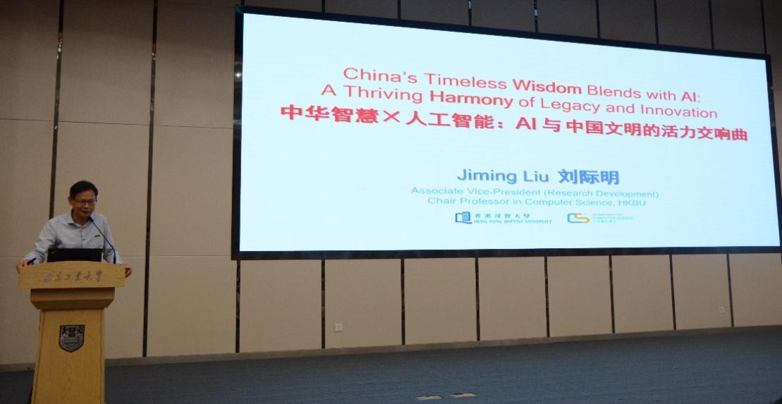 仪式结束后,由刚获聘的客座教授为在场师生作《中华智慧 ╳ 人工智能:AI与中华文明的活力交响曲》为主题的学术报告。