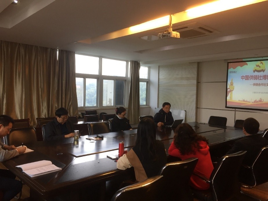 会上,郭天文同志首先简要介绍了学“四史”活动的内容及要求。随后,党支部副书记景朋森同志作《中国供销社博物馆-供销合作社文化的记忆与传承》微党课,介绍了中国供销社博物馆的建设背景与意义、博物馆的布局及文物展览、博物馆展览的主题—供销商品等。通过介绍供销社合作历史和文化,让党员同志对新中国发展史有了具象的了解和感悟,增强走中国特色社会主义道路的信心。最后,支部党员就进一步开展好学“四史”主题党日活动进行讨论和安排。