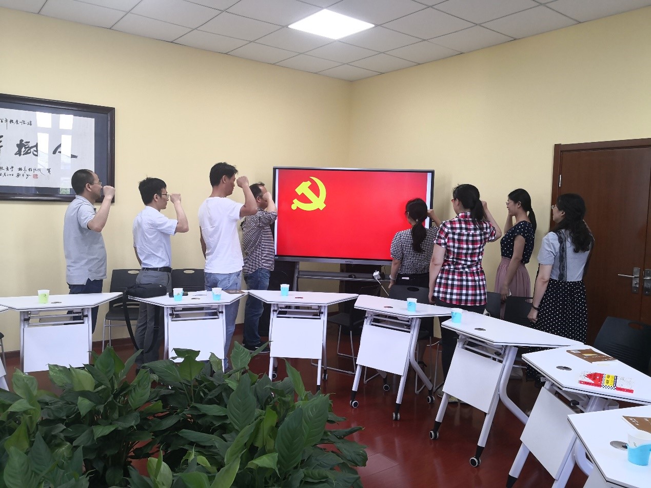 会议最后,新入党的李宝顺同志在与会党员的陪同下,向党旗宣誓。
