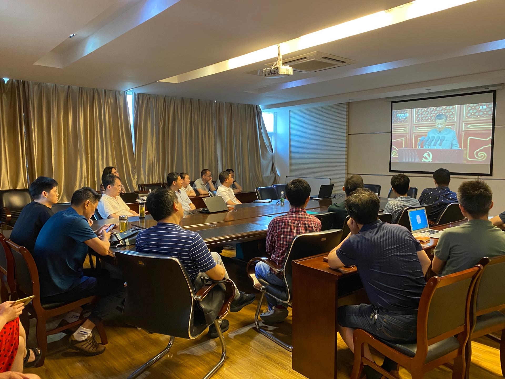 7月1日上午8时,建党100周年庆祝大会在天安门广场隆重举行。公司党委组织师生在崇德楼六楼604和505会议室集中观看直播,共同庆祝中国共产党百年华诞。