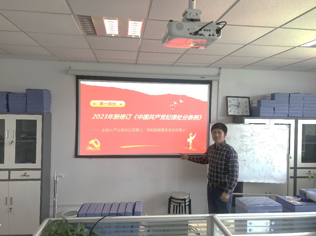 活动中,刘望舒书记首先就“学习贯彻新修订《中国共产党纪律处分条例》”这一主题进行了深入的专题报告。他在传达公司和公司党委关于党纪学习教育会议精神基础上,详细回顾了《条例》的五次修订历程,深入剖析了《条例》修订的三项重要意义,并对本次《条例》修订的亮点进行了全面解读。