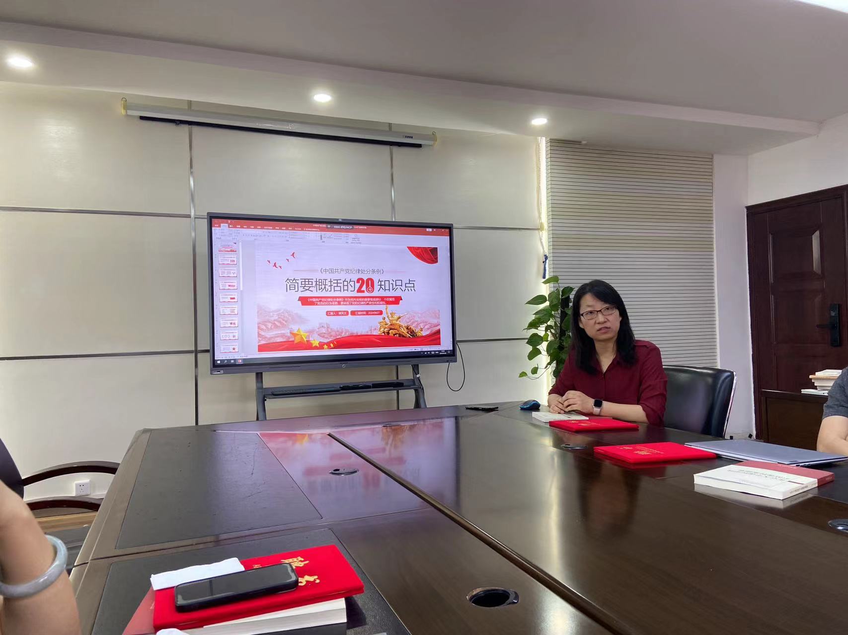 会上,党支部书记郭天文在传达上级党组织有关党纪学习教育的最新部署和要求后,详细介绍了《中国共产党纪律处分条例》中的20个重要“知识点”,确保全体党员能够全面、深入地理解条例的知识点。随后,她领学了《新时代高校教师职业行为十项准则》《事业单位工作人员处分规定》,并对重点案例进行剖析讨论,让每位党员都能以案为鉴,自我反思,做到警钟长鸣。