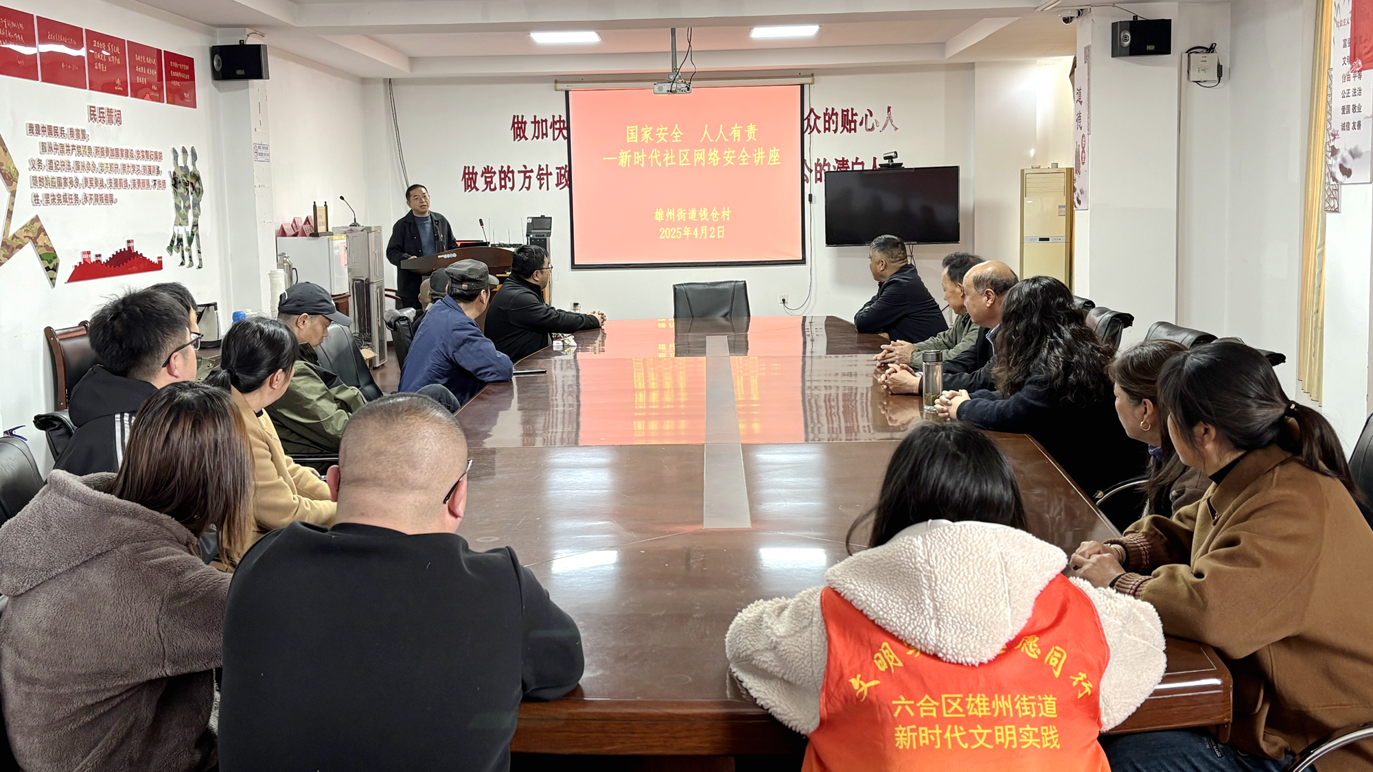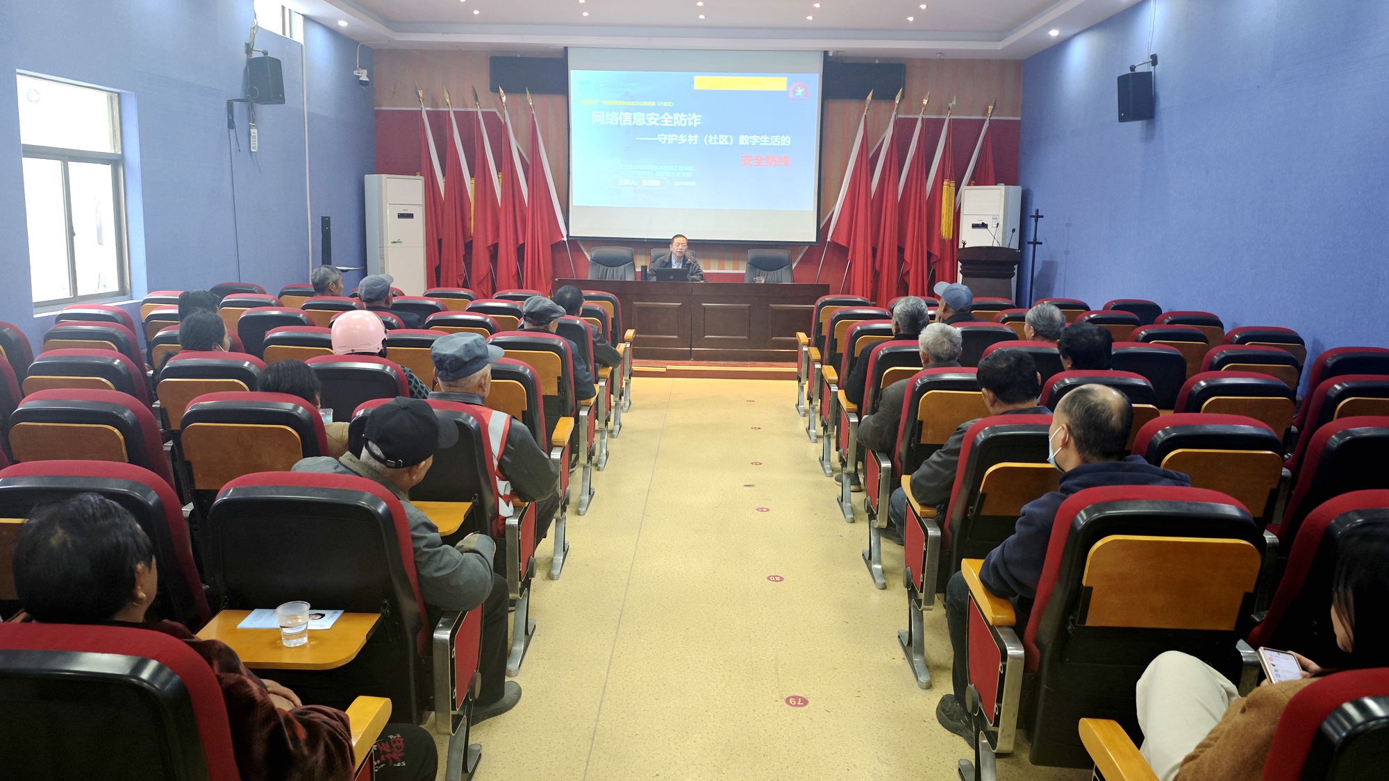 活动作为全国高校“双带头人”教师党支部书记“强国行”专项行动的实践项目,吸引了近百名乡村(社区)居民参与。讲座由计算机与信息工程公司(人工智能公司)教师第五党支部书记景朋森主讲,他围绕“国家安全与数字乡村安全”主题,结合村民日常网络使用场景,通过动画模拟、情景短剧等生动形式,深入剖析网络空间治理、电诈案例警示、反诈技巧、科技防护及社区实践指南五大模块。针对老年人群体,景书记特别提炼了反诈防诈口诀,现场互动热烈,赢得大家的一致好评。